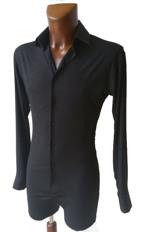 Sparkle under spotlight Latin body Shirt, Black, Large 40 inch chest, 16.5" collar