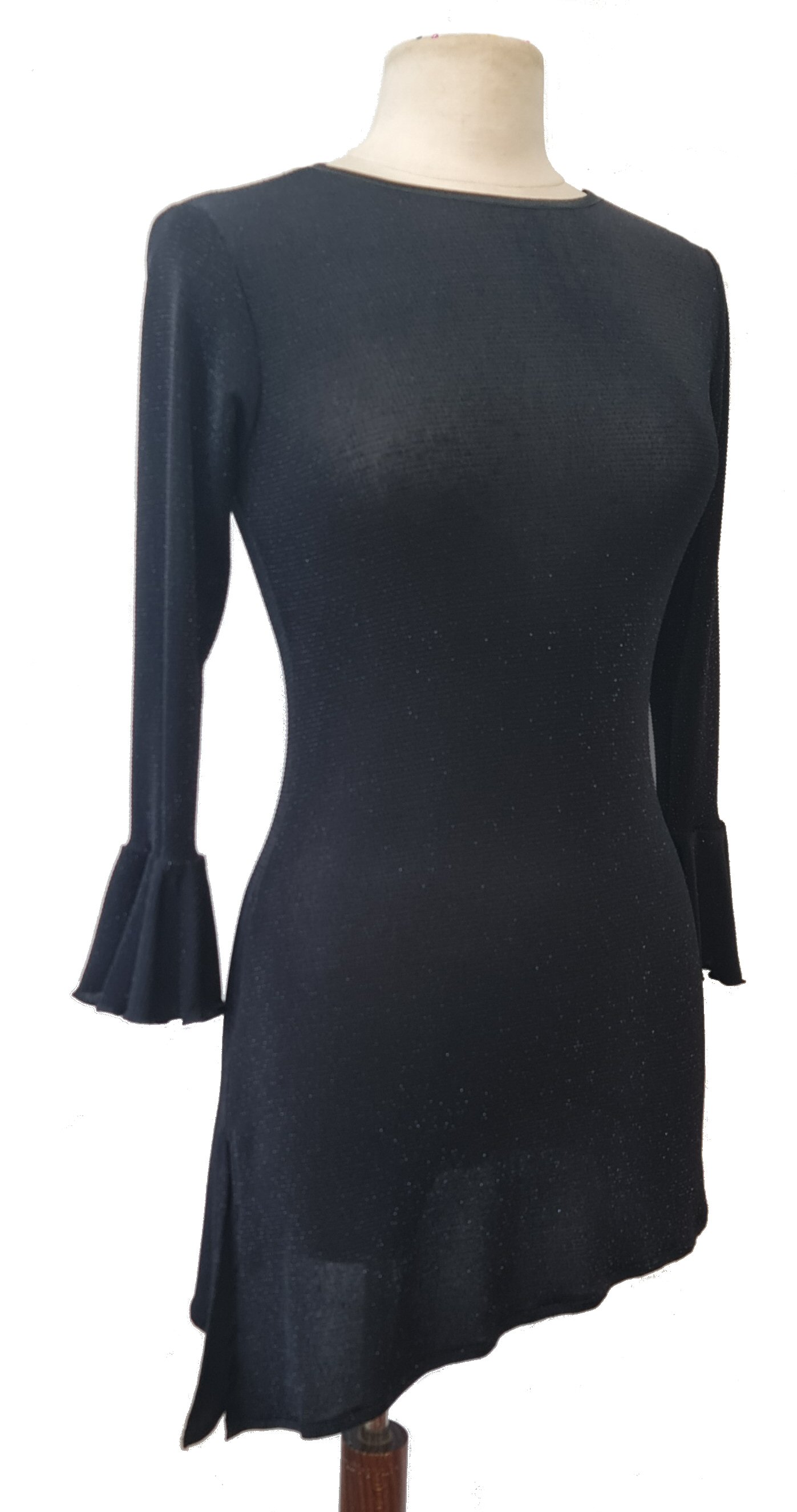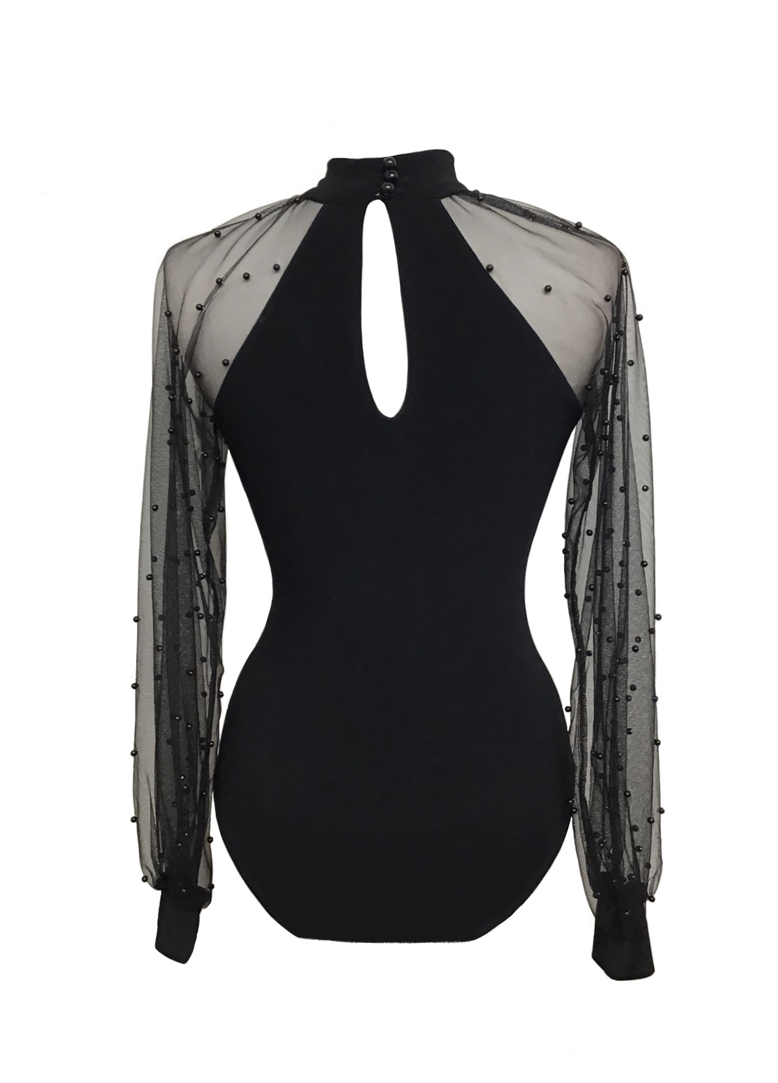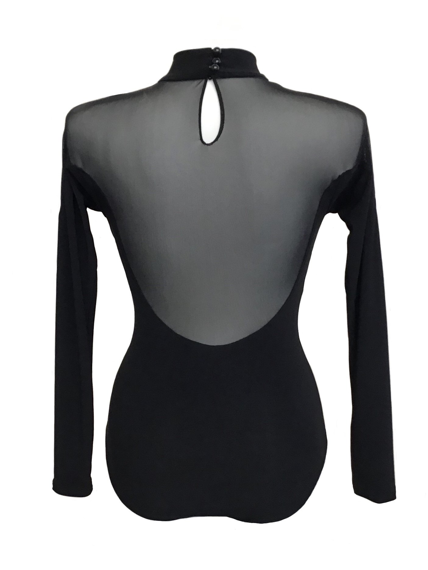 Plain front Latin shirt with mesh sleeves (no shorts), Black, Small (Chest 33"-36"/ 84-90cm)