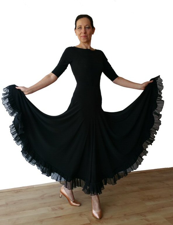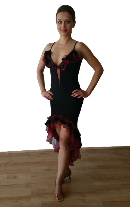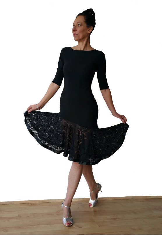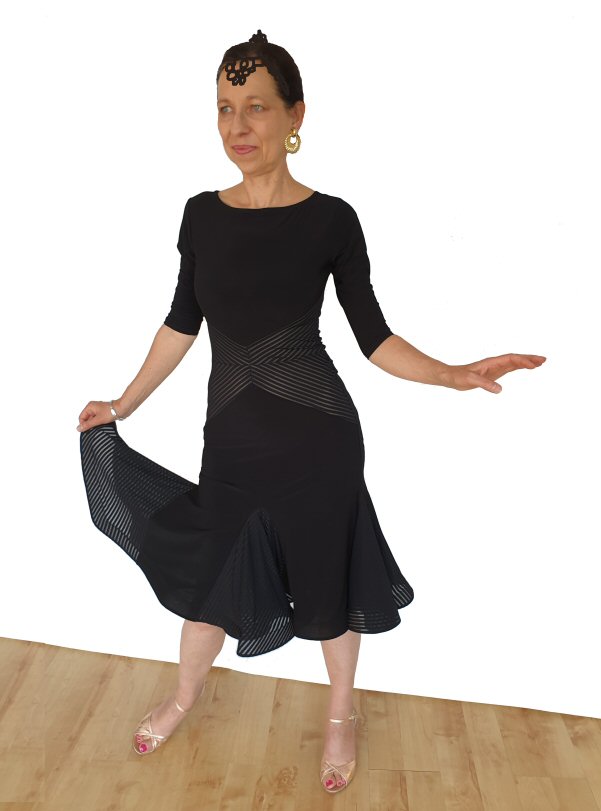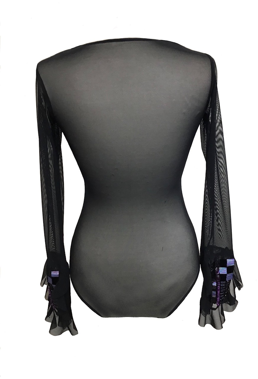 Plain front Latin shirt with mesh sleeves (no shorts), Black, Small (Chest 33"-36"/ 84-90cm)