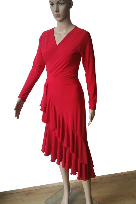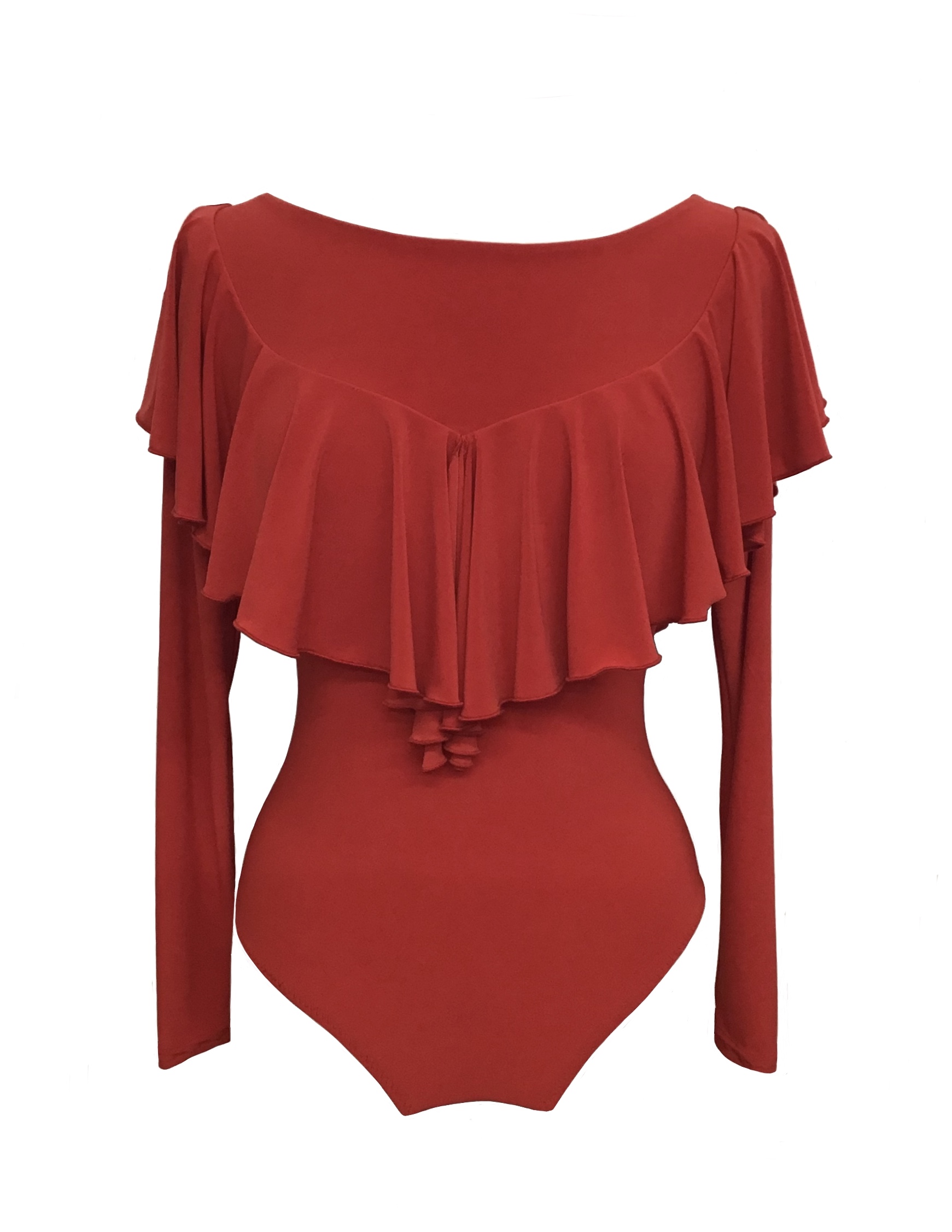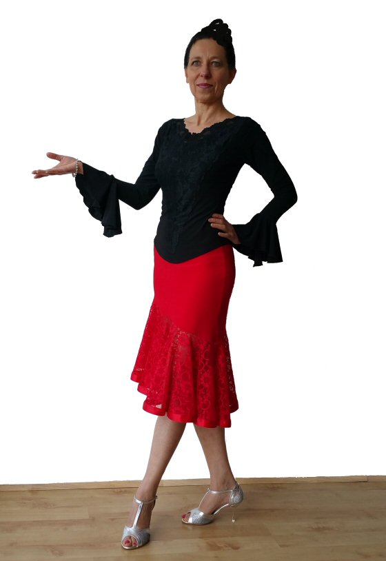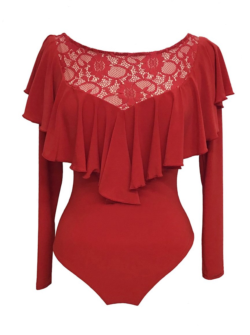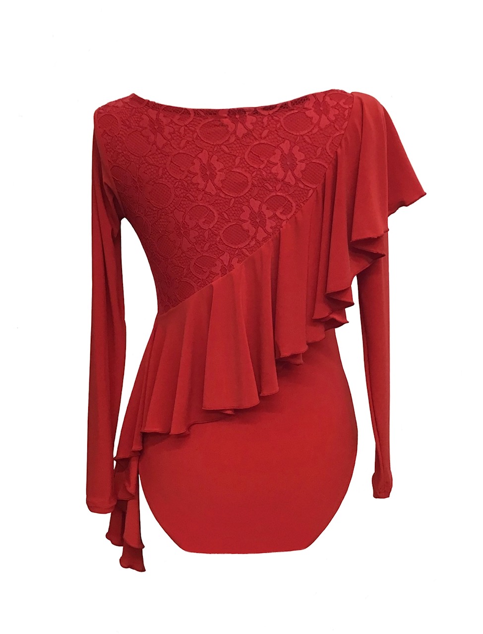 Stretchy Raglan body shirt, Red stretch lace/Red jersey, Large 38-42 inch chest, 16in collar