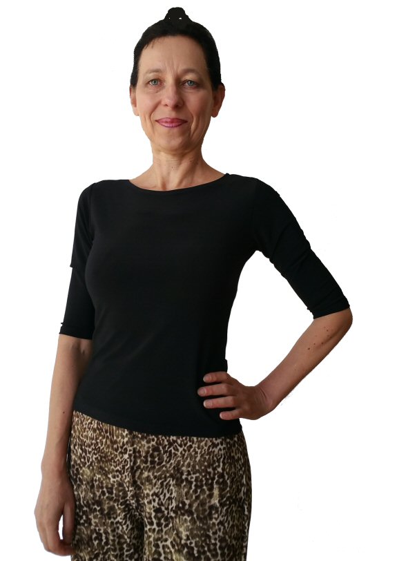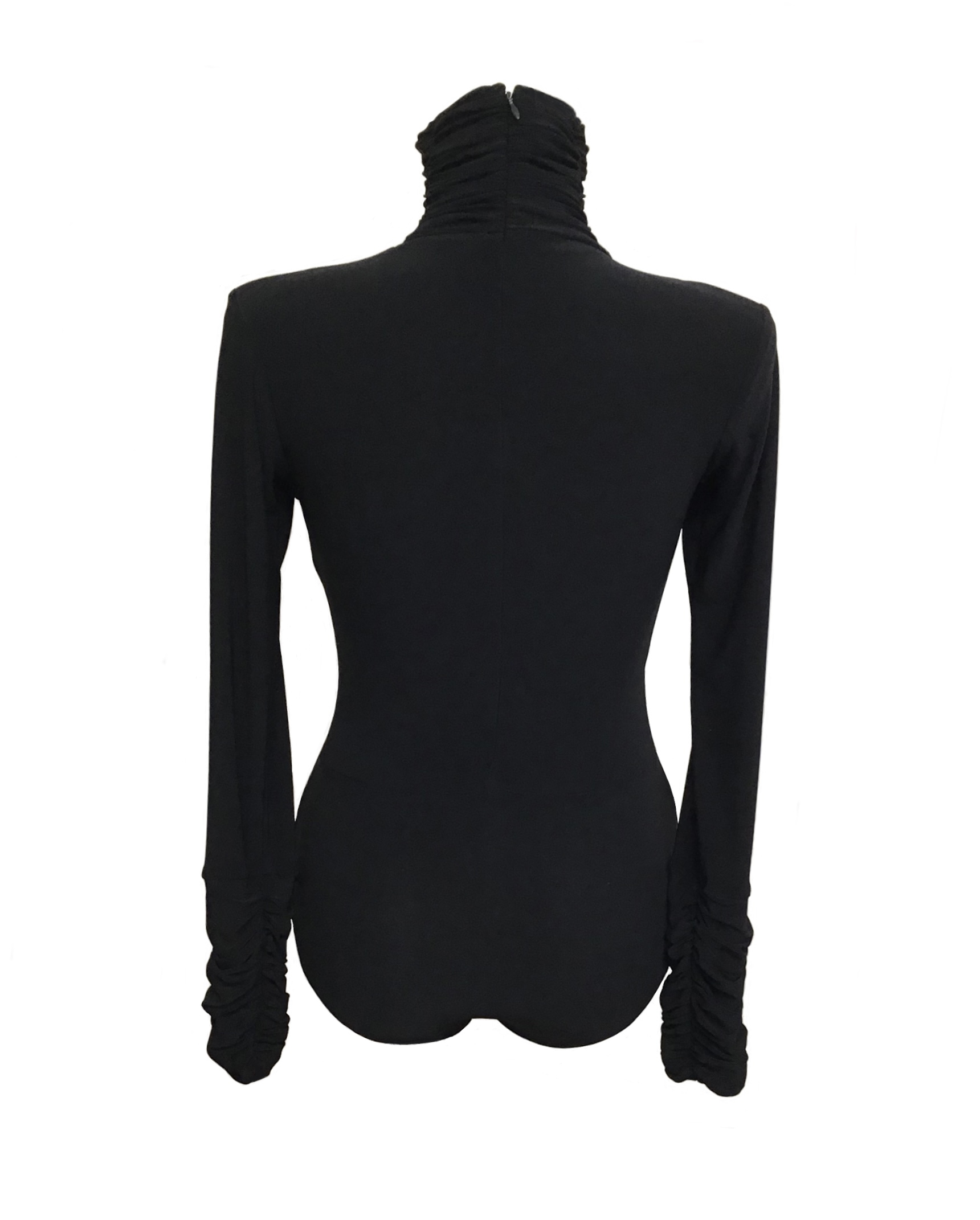 Macho stripe Stretch Latin comp. body shirt with Zip, Black jersey/velvet, Xtra Large 42 inch chest