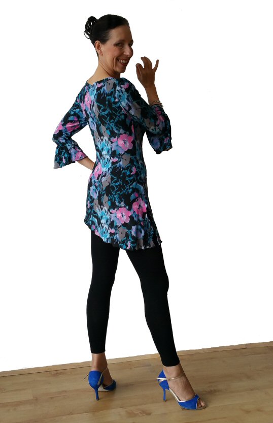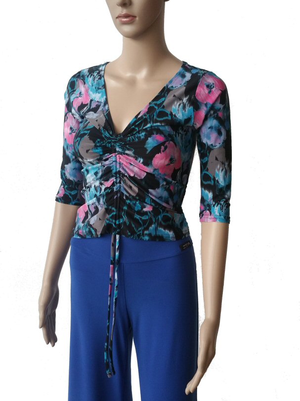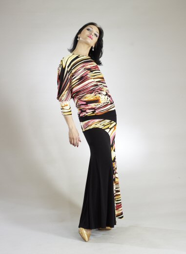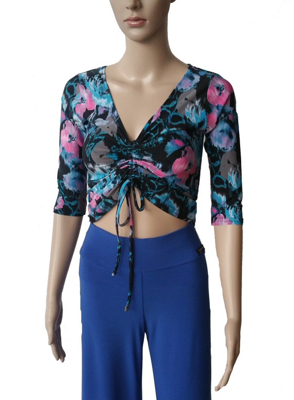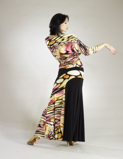 Sparkle panels Raglan Latin shirt, size L: Collar 16", Chest 40", Waist 38", Length 30"