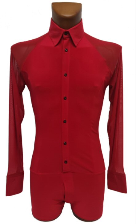 Mens Flat front Latin shirt with mesh sleeves (no shorts), Black, Xtra Large (Chest 40"-43"/ 102-109 cm)