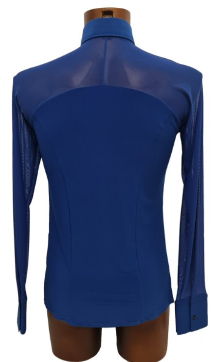 Stretchy Raglan shirt, Blue/Blue mesh, Large 38-42 inch chest, 16in collar
