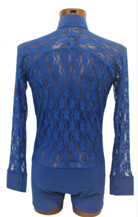 Stretchy Raglan body shirt, Blue stretch lace/Blue jersey, Large 38-42 inch chest, 16in collar