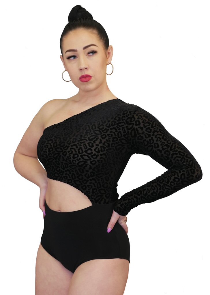 Stretchy Raglan body shirt, Animal print/Black, Large 38-42 inch chest, 16in collar