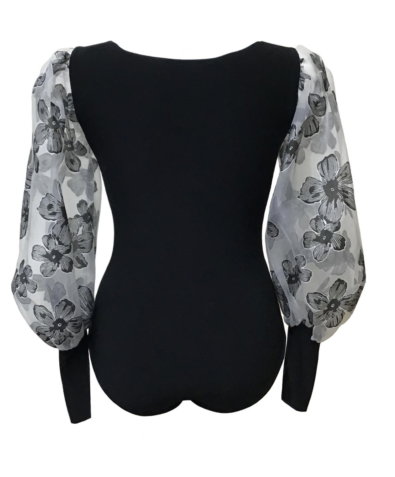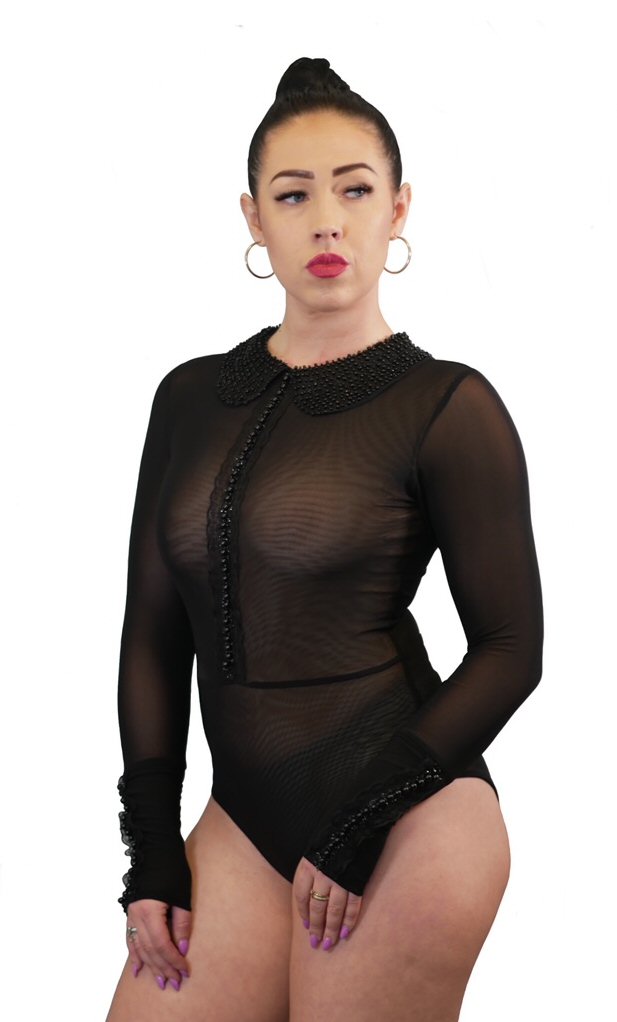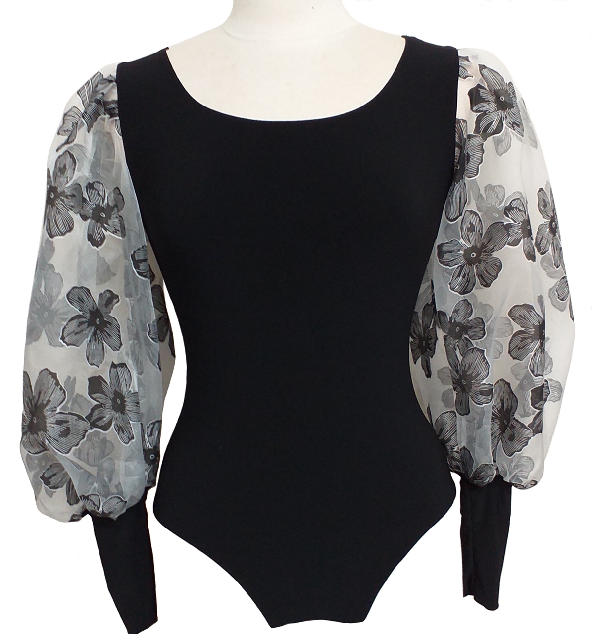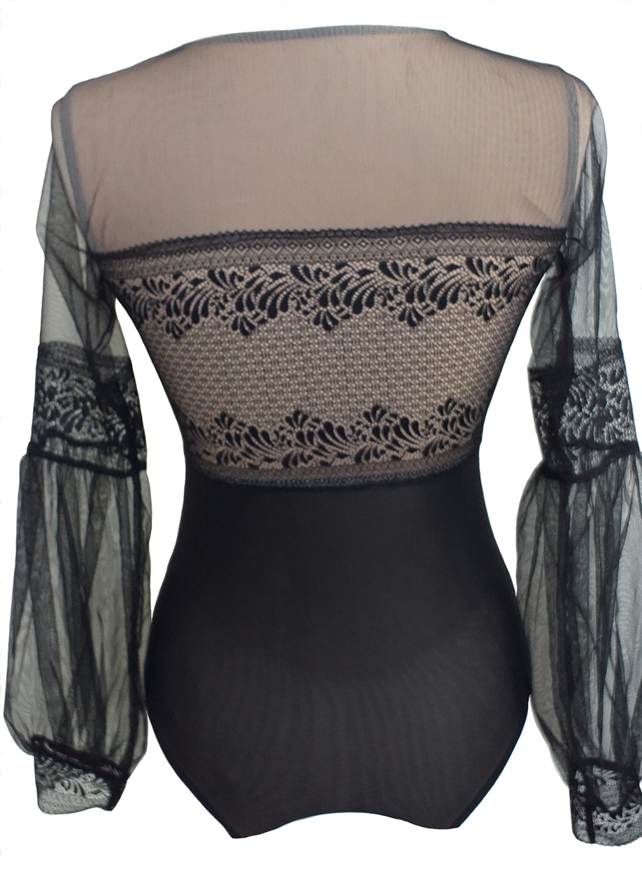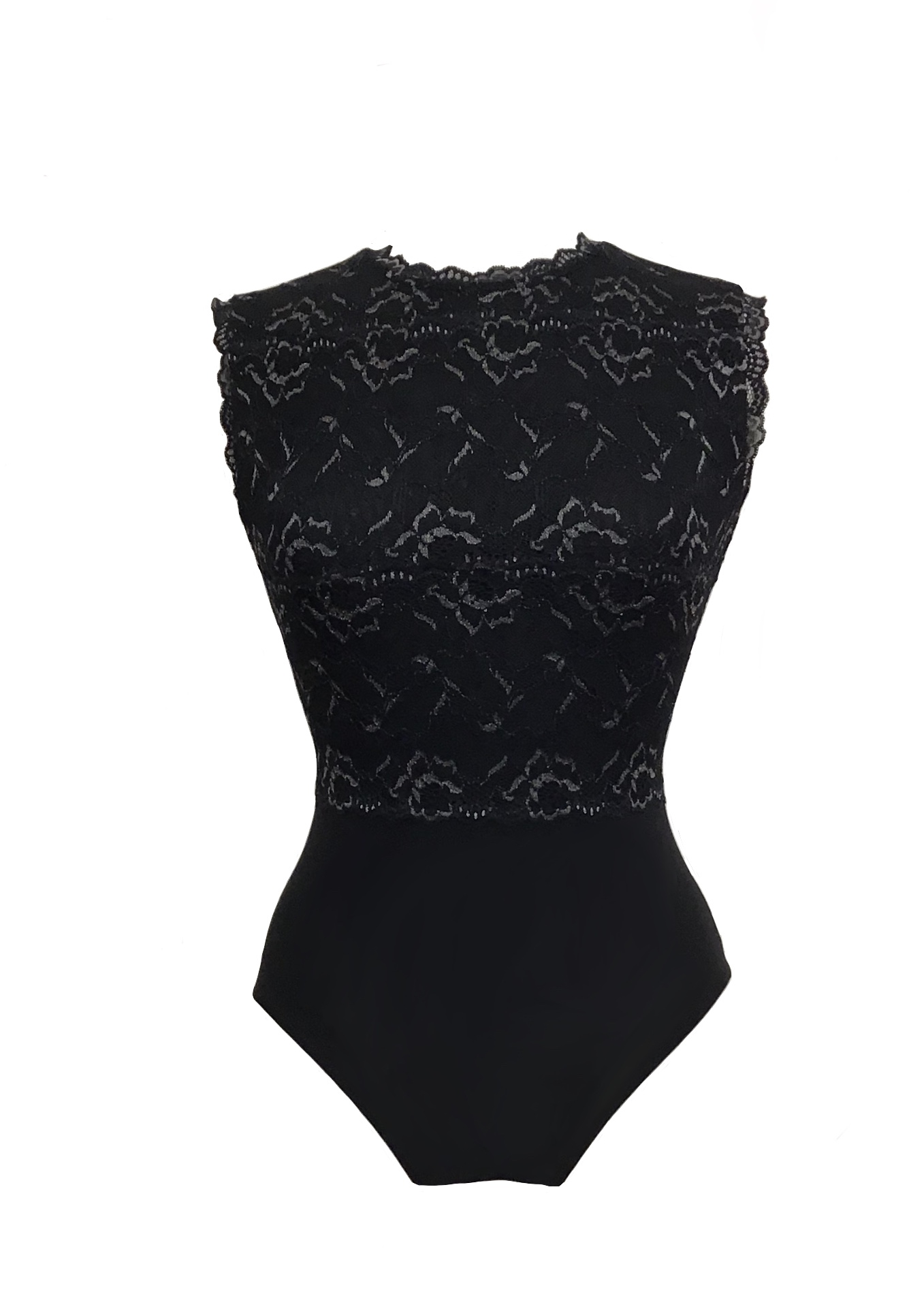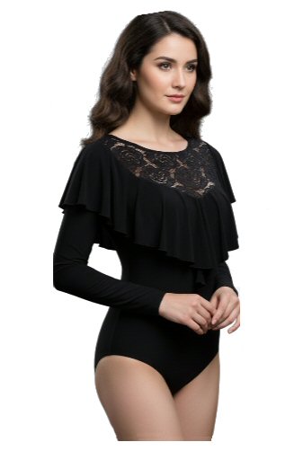 Stretchy Raglan body shirt, Black stretch lace, Large 38-42 inch chest, 16in collar