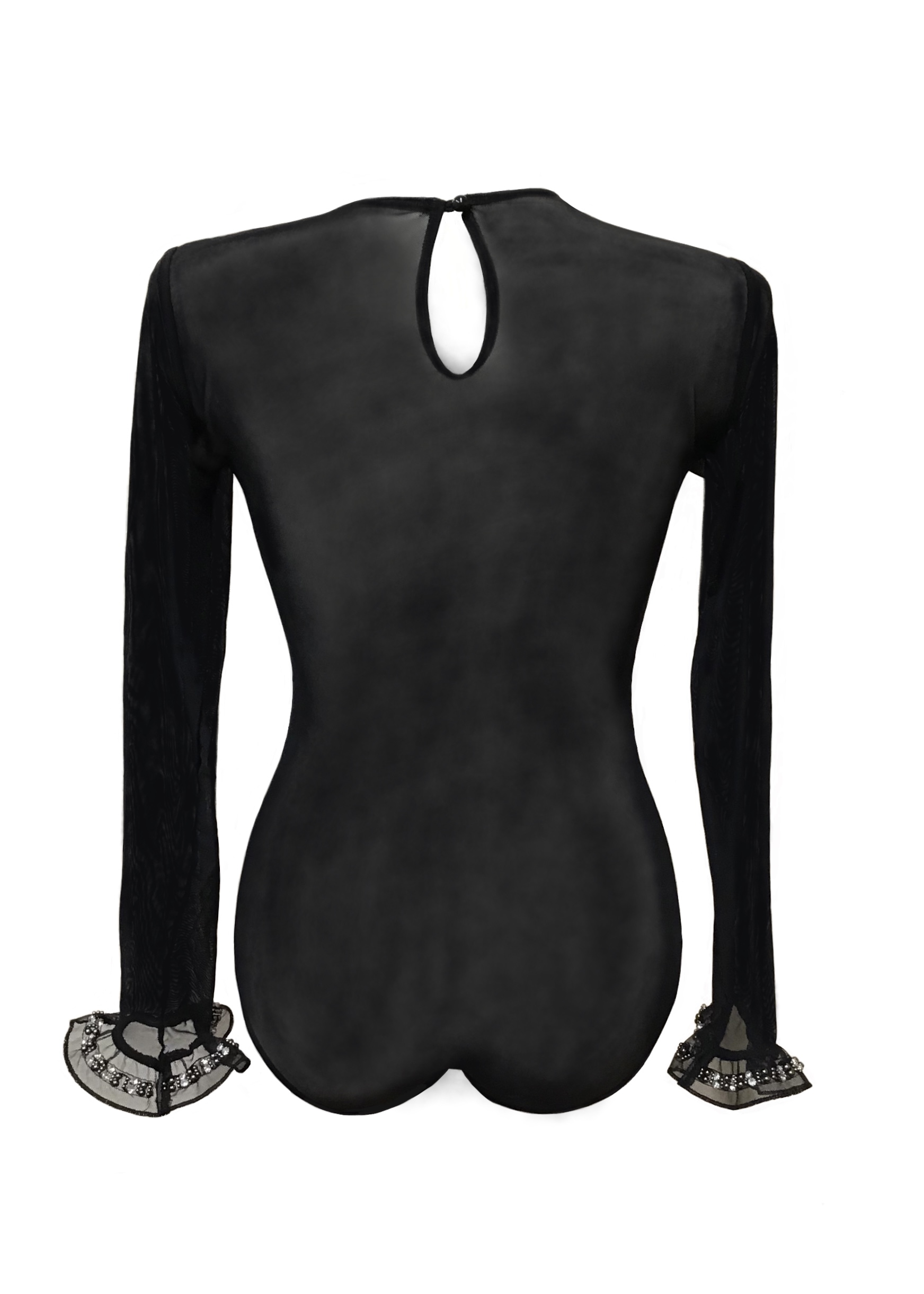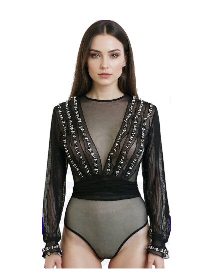Mesh sleeve Raglan body shirt, Black sparkle, size XXXL: Chest 46-48", Waist 40-48"