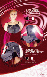Stretchy skirt fitted at hips with loads of floats below hips. Length 22" (56cm).